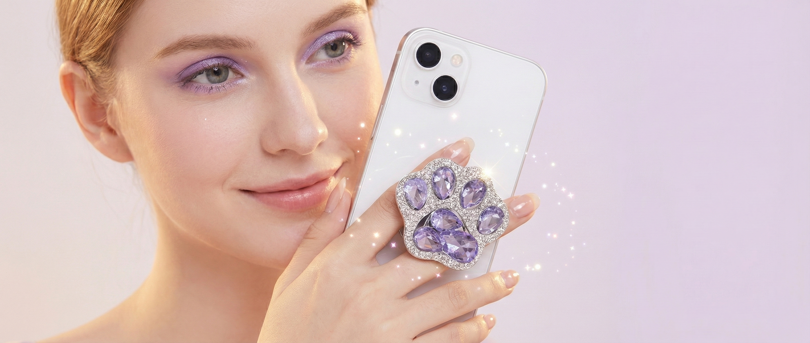 Super Bling light Purple and Rhinestone 3M Pop Socket